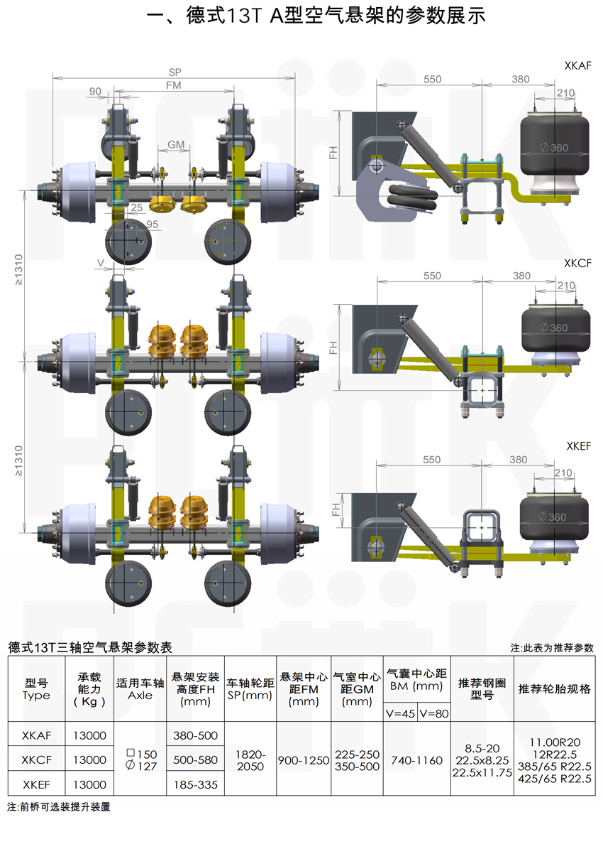 半挂车空气悬架系统设计技术参数表 空气悬挂介绍资料